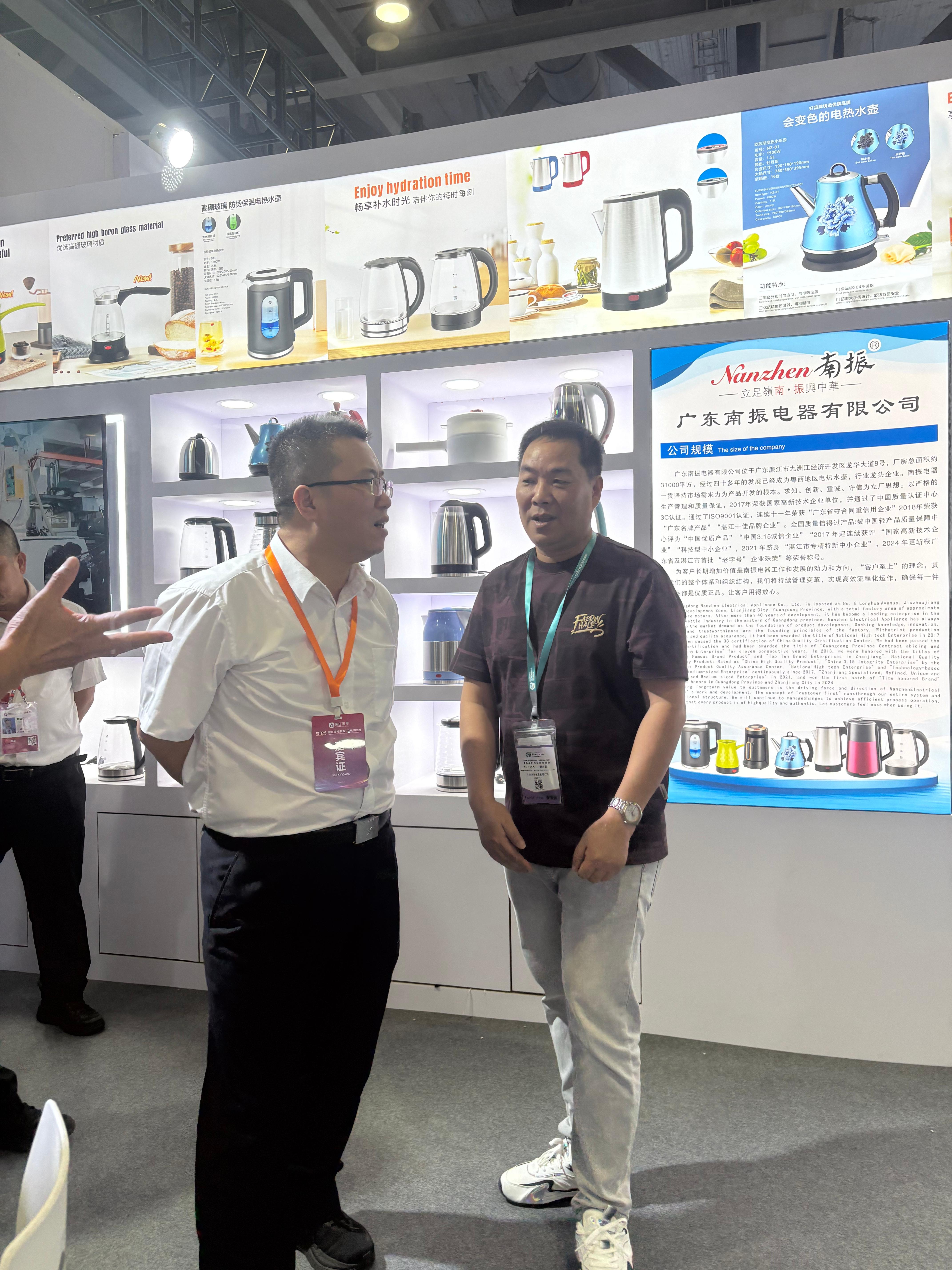 广东南振电器有限公司作为广东省***高新技术民营企业应邀参加此次展会,携三大核心技术产品线亮相2025廉江家电秋季(广州)博览会展区,以技术创新赋能外贸高质量发展,广东南振电器此次参展阵容聚焦“智能、节能、绿色”三大关键词,集中展示旗下自主研发的智能电热水壶产品、智能控制模块及跨境定制化智能电热水壶/咖啡壶解决方案,吸引了来自东南亚、欧洲、中东等地区的客商驻足洽谈。其中,搭载智能控制和智能保温技术产凭借研发设计的多重优势,深受采购商的青睐参观商络绎不绝,针对海外市场研发的低功耗家电控制模块,因符合欧盟最新能效标准,首日便与多家经销商敲定合作意向。作为深耕电水壶领域42年的高新技术民营企业,广东南振电器始终以技术创新突破贸易壁垒。